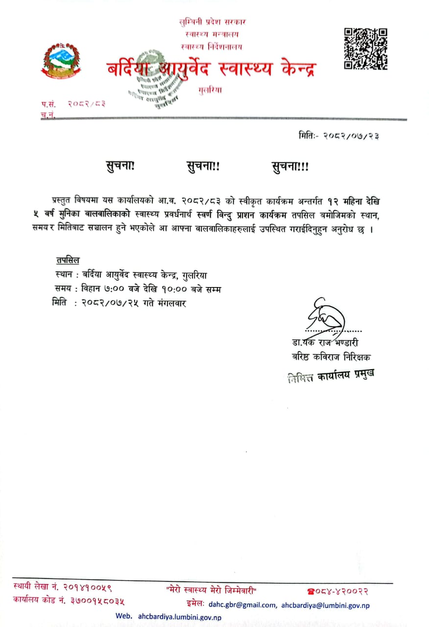 स्वर्णविन्दु प्राशन सम्वन्धी सूचना